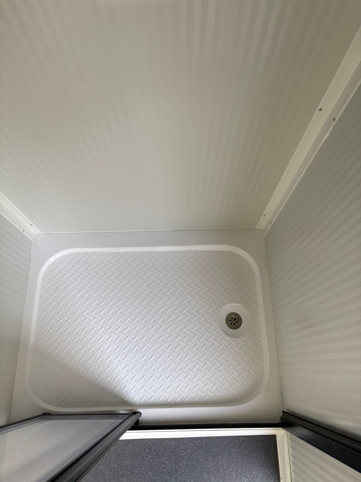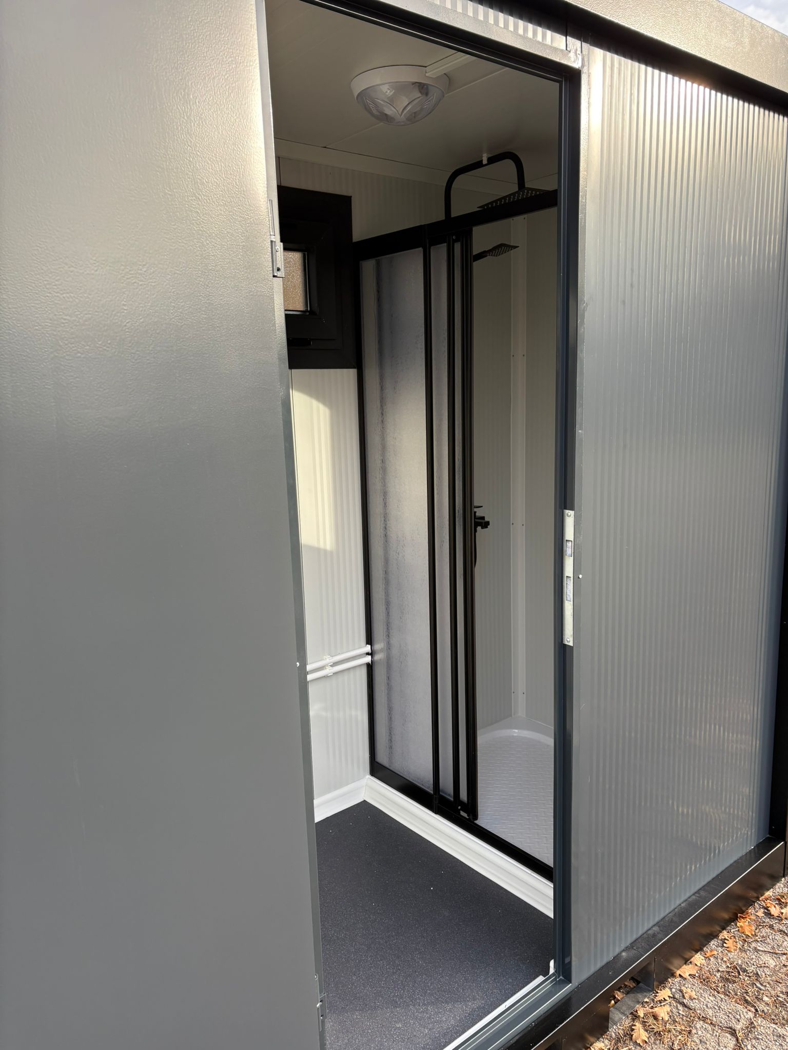 This prefab shower unit with changing space offers comfort and privacy in one practical layout. Measuring 220 × 120 × 230 cm the unit features a spacious shower with a rain shower head and black fittings combined with a changing space that allows users to get dressed comfortably. It is fully insulated ventilated and equipped with LED lighting creating a pleasant and functional environment in any season. Delivered plug and play the unit is low maintenance and ready for immediate use once water power and drainage are connected.As a portable shower unit with changing room it is suitable for both temporary and permanent use. Whether placed at campsites events sports facilities or temporary accommodation it offers users their own clean private and modern shower area. Quick to install and easy to maintain it provides a practical and reliable solution wherever on site shower facilities are needed.