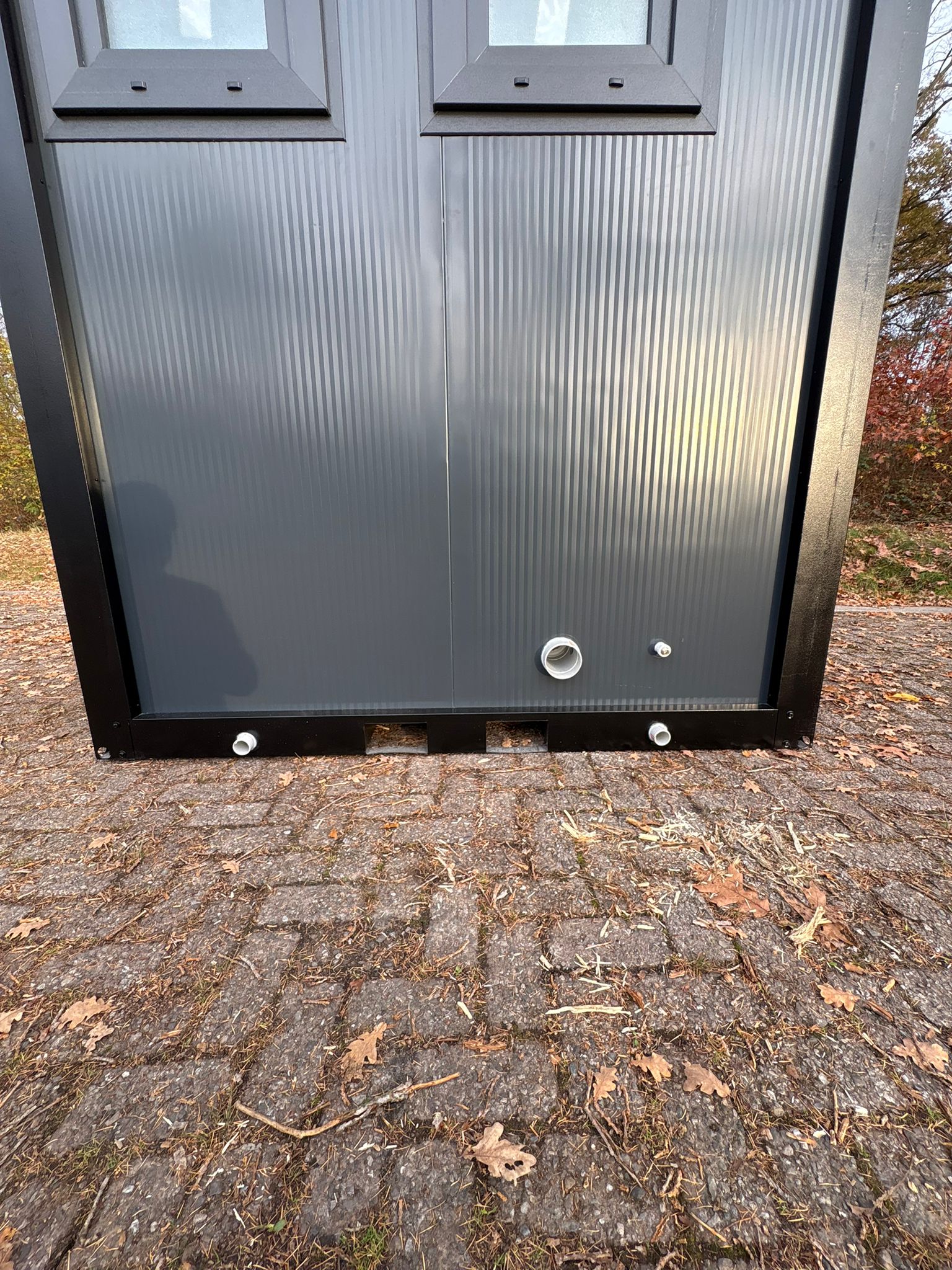 The portable toilet and shower unit is delivered fully equipped and ready for immediate use. Standard features include a ceramic toilet with concealed cistern, sink with mirror, and shower set with mixer tap and drain. Each room has its own lighting, ventilation, and non-slip PVC floor finish. Thanks to the plug & play connections for water, sewer, and electricity, installation is fast and straightforward — once placed, the unit can be operational within hours.